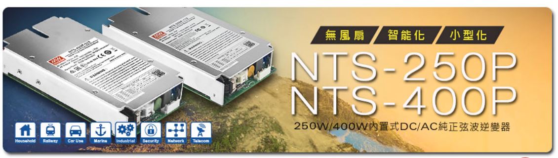 NTS-250P/400P系列 250W/400W 無風扇、智能化、小型化內置式DC-AC純正弦波逆變器
