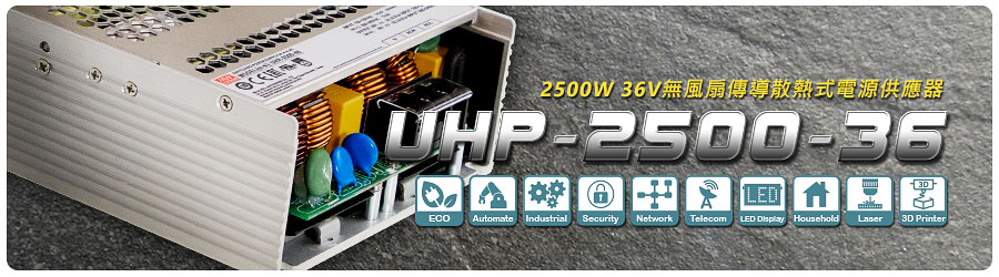 明緯領先業界所推出的傳導散熱式高功率電源UHP-2500