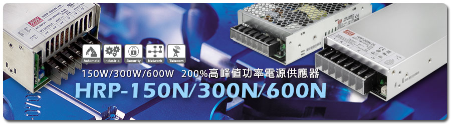 此時功率將遠高於平均功率,明緯推出的全新HRP-150N/300N/600N系列提供持續5秒的200%峰值功率可完美克服此問題