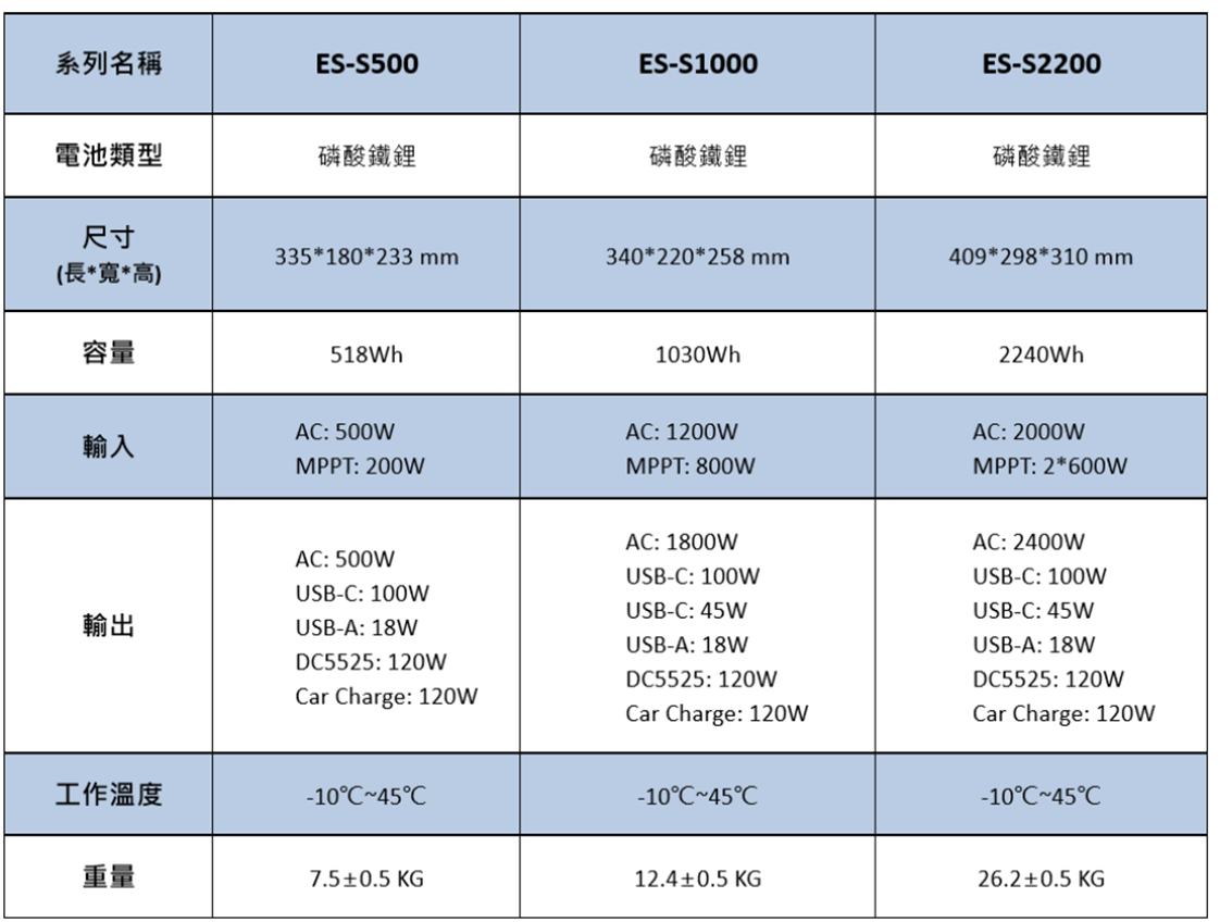 以高性價比與高產品效益為基礎,推出 ES-S 系列可攜式儲能電源,包含 0.5 度電、1 度電、2.2 度電三款產品,全面覆蓋從羽量級到專業級的用電需求,打造 "戶外 + 家庭 + 應急" 三位一體的能源生態,無論是戶外露營、戶外工作,還是家庭應急用電,都將為用戶提供穩定、可靠、高效的