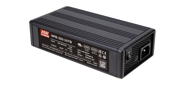 瓦數:120W~360W 功能特性: 基礎型可靠耐用寬壓充電器 金屬殼散熱快、使用不燙手 可調功能簡便、使用彈性高: 可調充電電壓 (由面板調整10.5~15.2V, 21~30.4V, 42~60V) 可調充電電流 (由面板VR調整50~100%) 透過面板DIP Switch可選2段或3段充電 保護功能:短路、過壓、過溫度、電池反極性保護 通過UL/EN62368-1及IEC60335-1/2-29雙安規認證 DC輸出接頭多樣可選:Anderson、麥克風頭、端子台 3年保固